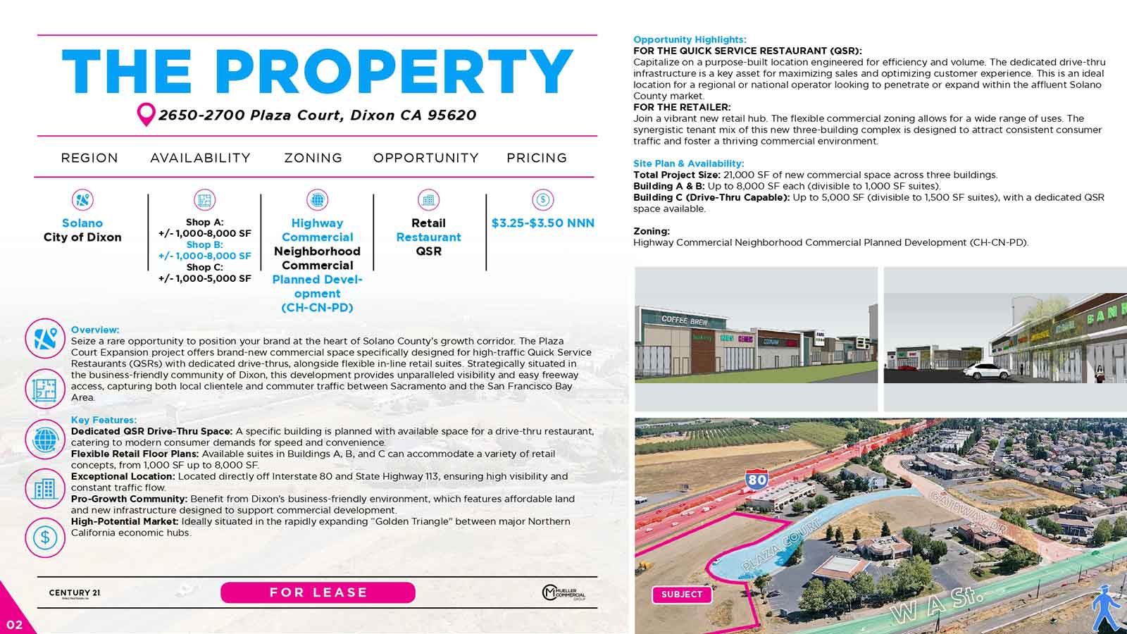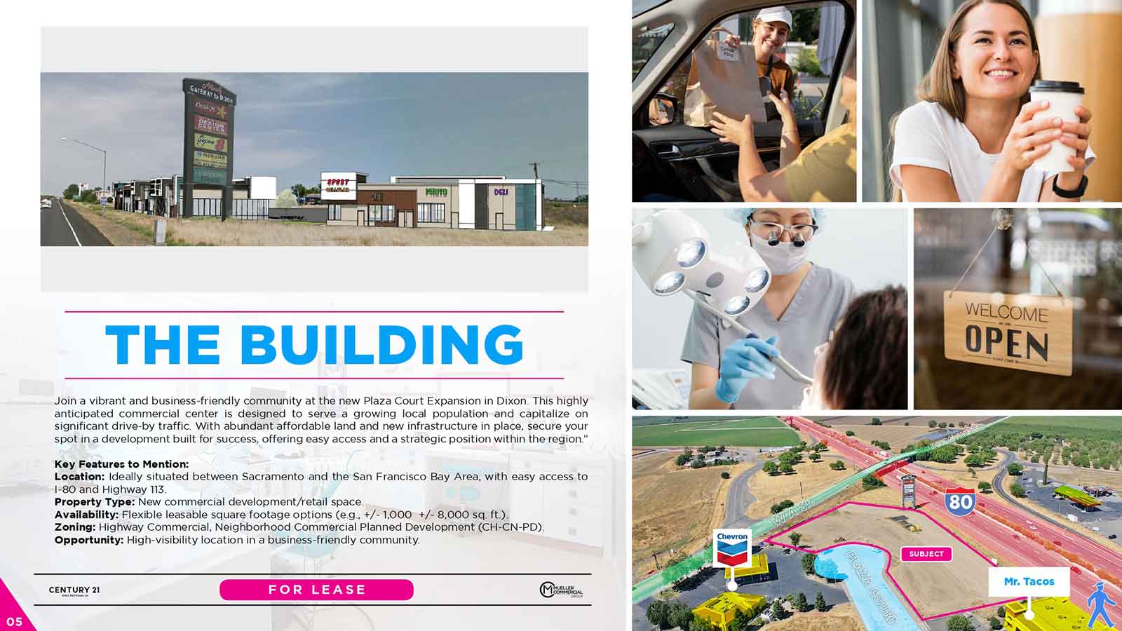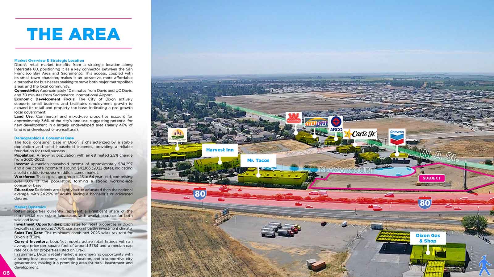 Join a vibrant and business-friendly community at the new Plaza Court Expansion in Dixon. This highly anticipated commercial center is designed to serve a growing local population and capitalize on significant drive-by traffic. With abundant affordable land and new infrastructure in place, secure your spot in a development built for success, offering easy access and a strategic position within the region.”