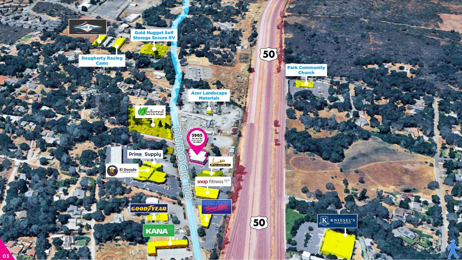 Positioned in the heart of the Shingle Springs commercial corridor, 3965 Durock Road presents a premier opportunity for owner-users or investors. This well-maintained, 17,500 SF showroom and flex building benefits from its strategic location just off Highway 50, providing unmatched visibility to local and regional traffic. With a diverse tenant base and Class B infrastructure built in 2004, the property is perfectly suited for retail storefronts, professional offices, or specialized showroom use.