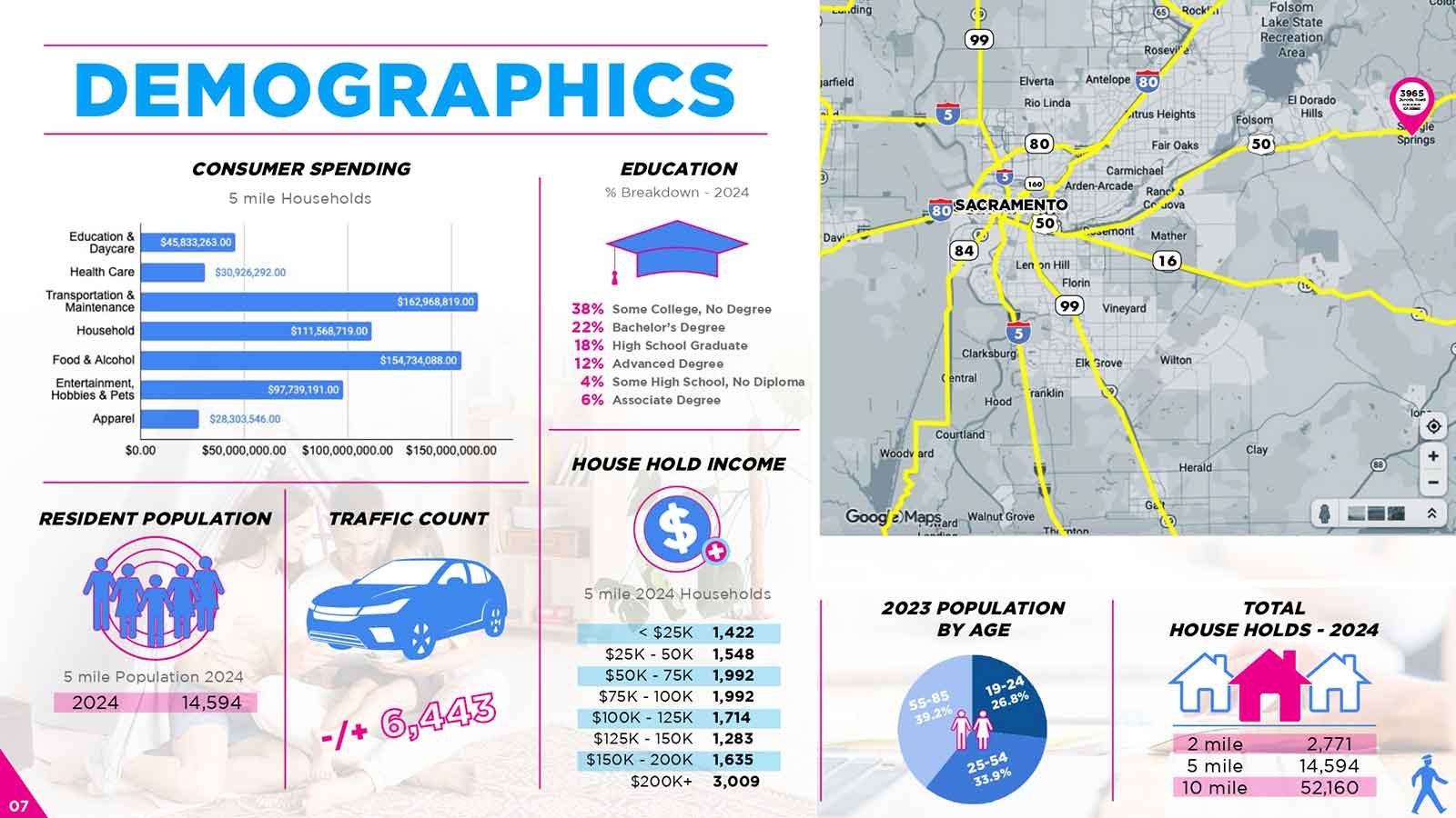 East Sacramento is home to a diverse mix of professionals, families, and long-time residents who value quality and convenience. The neighborhood’s strong household incomes and community pride translate into loyal, repeat customers eager to support local businesses.